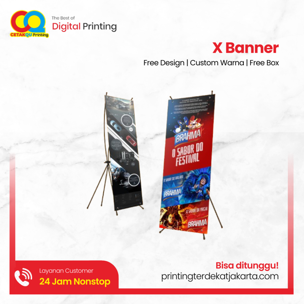 Jangan tunggu lama, tampilkan bisnis Anda lebih menonjol dengan X Banner berkualitas dari Printing Terdekat Jakarta!